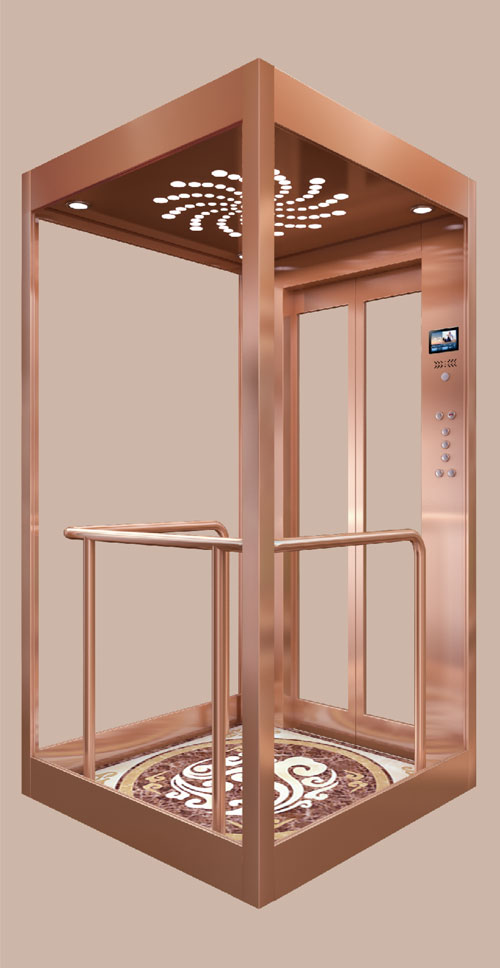 轎壁 : 玫瑰金發(fā)紋不銹鋼,安全夾膠玻璃